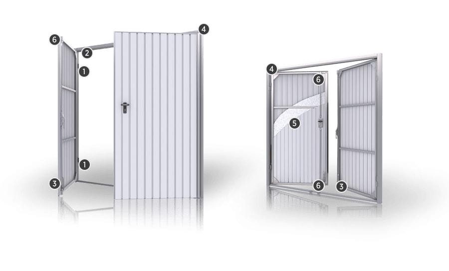 - ościeżnica i skrzydło wykonane są z kształtowników stalowych ocynkowanych, bez przegrody termicznej